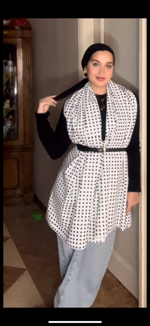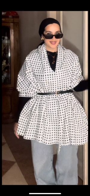 Chic, timeless, and effortlessly elegant — the Midnight Snow Shawl blends the classic contrast of white and black dots for a sophisticated look that never goes out of style. Made from thick, warm Gokh material, it’s designed to keep you cozy while adding a touch of modern charm to any outfit. Perfect for cold days and stylish evenings alike.