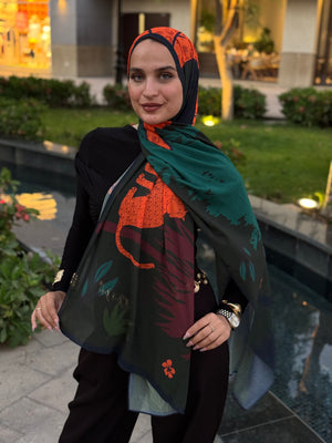 Step into the wild with our Predator Paradise Scarf, a striking dark green canvas adorned with bold leopard print. Fierce, elegant, and untamed β the ultimate power piece for your look. ππΏβ¨